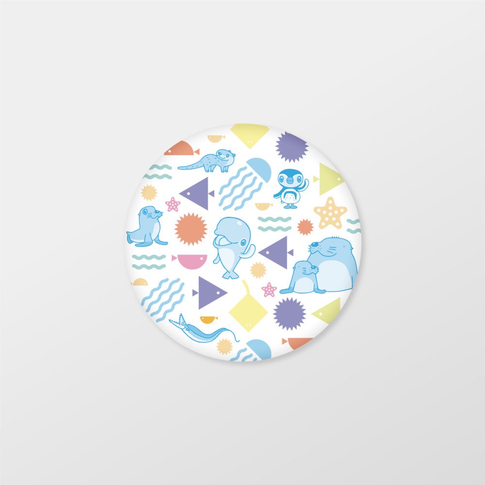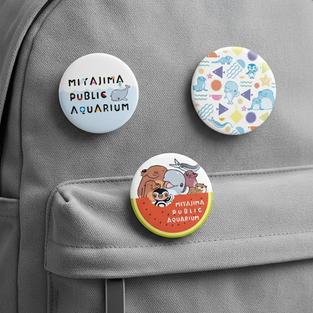 ノベルティとして水族館内で配布する缶バッジデザイン3種